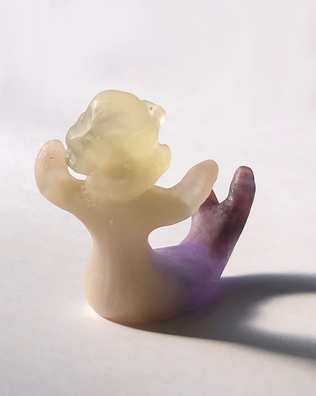 手のひらに乗る小さな鋳造ガラス(パート・ド・ヴェール)の手法で制作した人魚たちシリーズの14番目の作品。