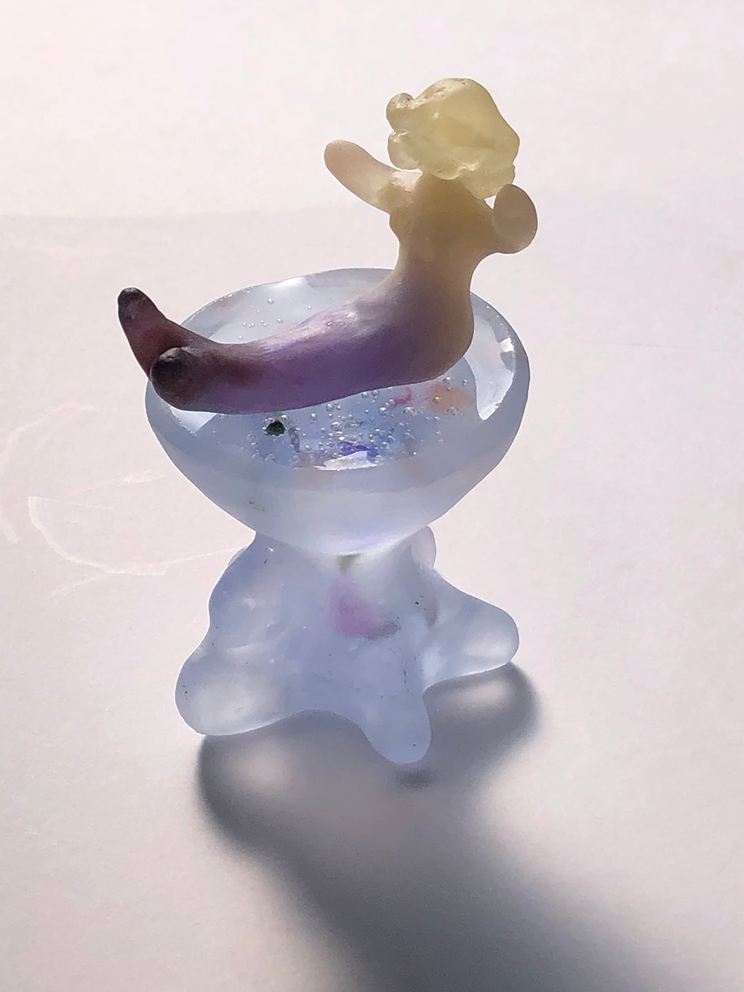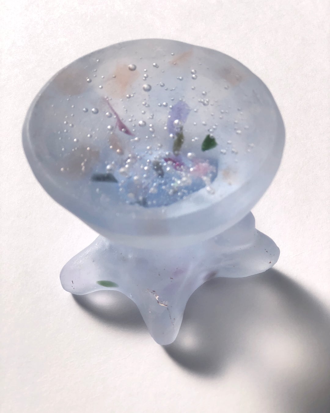 鋳造ガラスの手法で制作した透明感のある小さなオブジェ。
